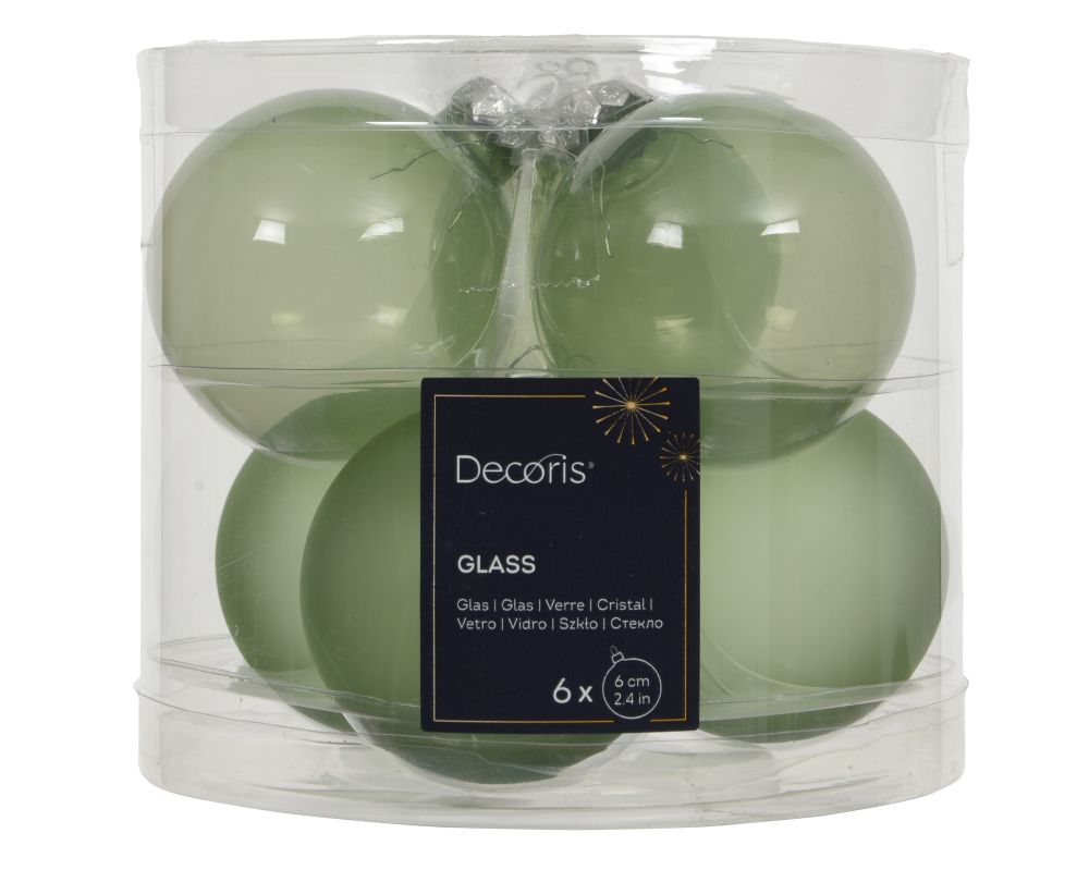 Glas-Kugeln 6cm transp. matcha-gruen 6 Stck 141844