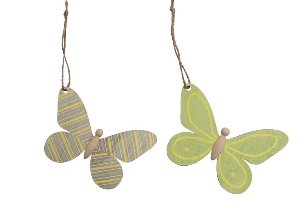 Holz-Schmetterlinge Kt a 4 zum Haengen, gemustert, sort. gelb+gruen , 9x5,5x0,3cm 27HOJ25