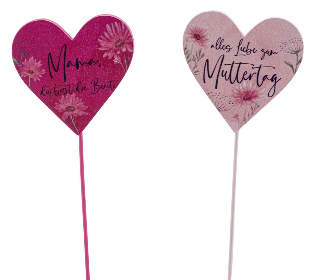 Holzstecker-Herz,Muttertag-Spruch 2sort., Rosatoene, 26x6x0,5cm 12404345