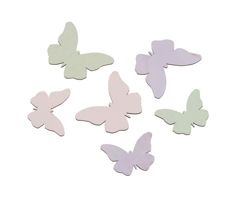 Holzstreu 18St.i. Tuete gruen/flieder Schmetterlinge, ca. 4,5 und 5,5cm 12605189