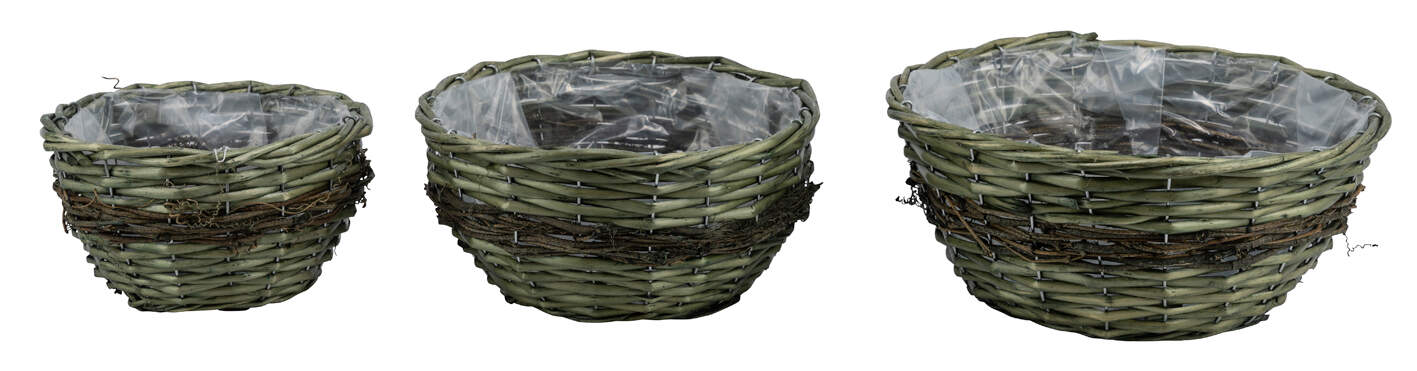 Korbset 3tlg., gruen, rund innen Folie, 30x30x13cm 12601481