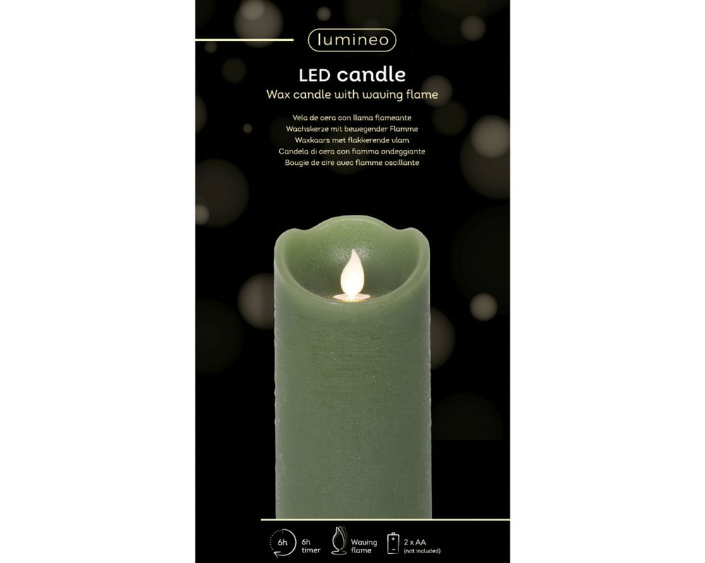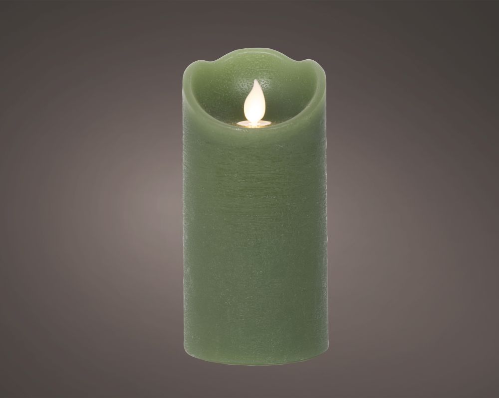 LED Flackerkerze Batt.inn dia7.5x15cm gruen 489314