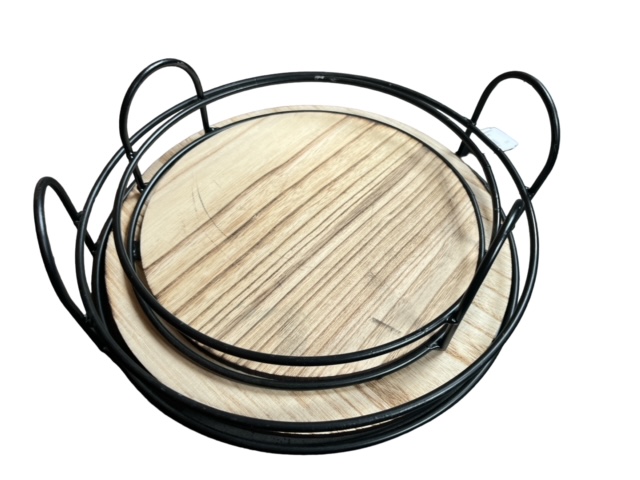 Metall-Tablett m. Holzboden S/2, D30/25 H6cm schwarz 760325-13