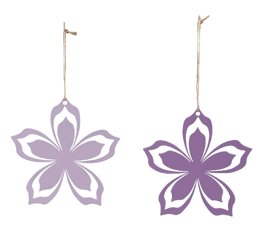Metallblume, haengend, 2sort. Fliedertoene, 8x0,01x7,5cm 12602001
