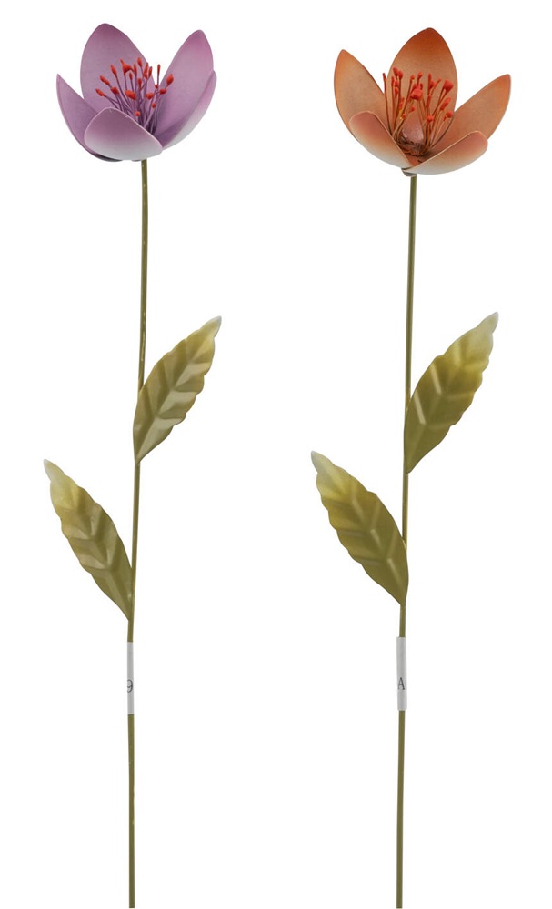 Metallstecker Blume, 2sort. orange/flieder/gruen,5,5x4,5x30 12602030