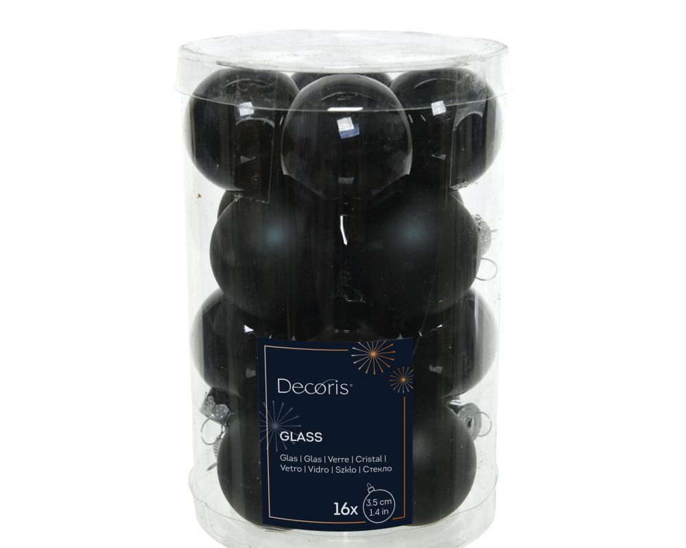 Mini-Glaskugeln glanz/matt 3,5cm schw. 16 St 010300