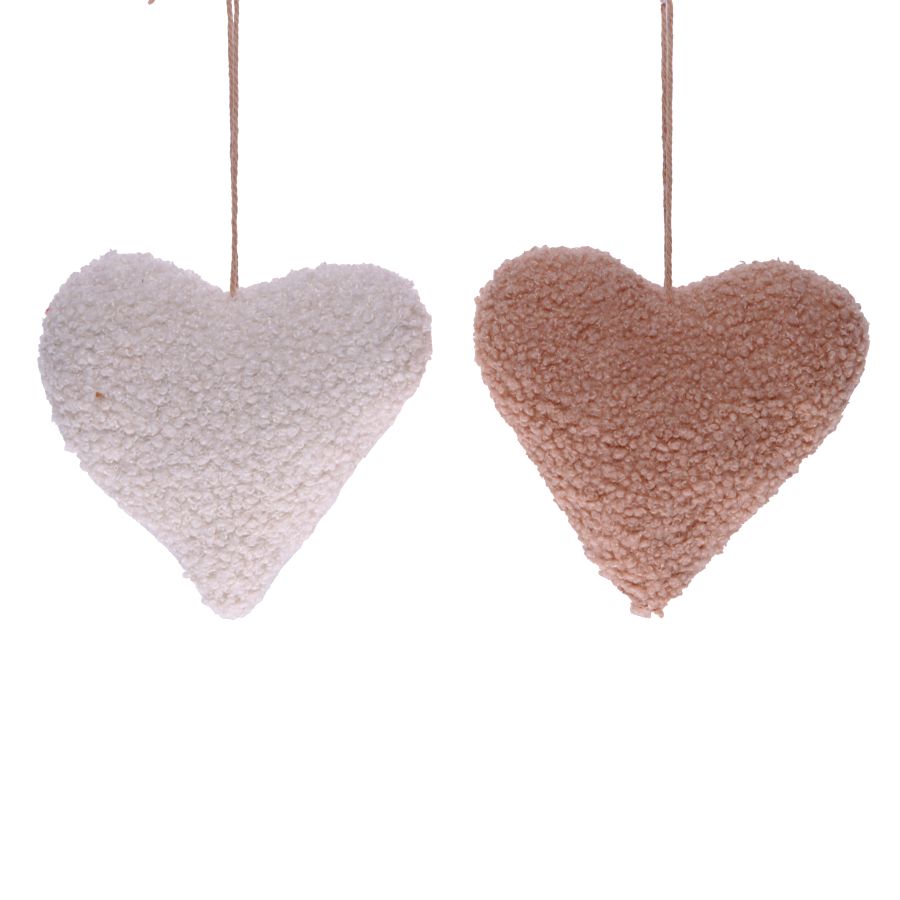 Stoff-Herz weiss/beige sort. ca. 12x5x11cmH 18840